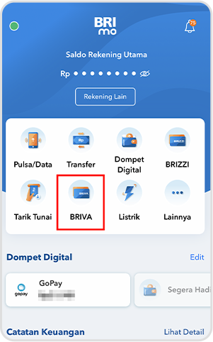 1. Buka aplikasi BRImo anda, lalu pilih menu BRIVA.
