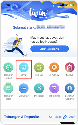 1. Buka aplikasi Livin’ by Mandiri anda. Pilih menu “Bayar”.